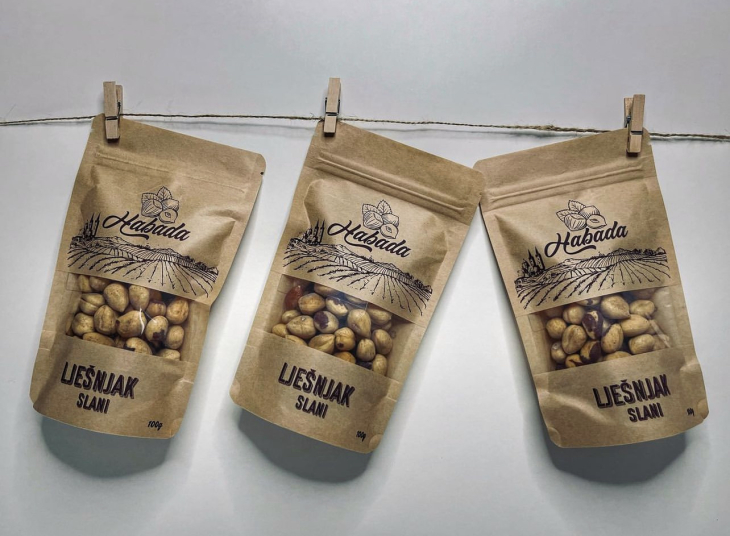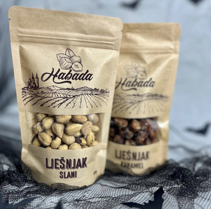 Domaći lješnjaci vrhunske kvalitete plod su obiteljskog truda i rada u nasadima lijeske na plodnoj slavonskoj crnici u đakovačkom kraju. Lješnjak slani dolazi u prigodnoj retro ambalaži s motivima Đakovačke katedrale i slavonskim poljem u pakiranjima od 100g, 250g, 500g i 1kg.