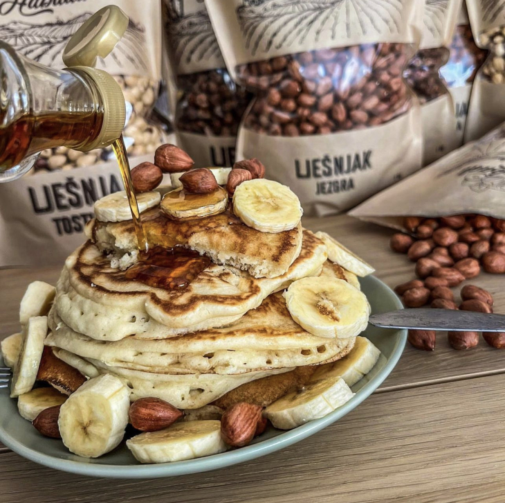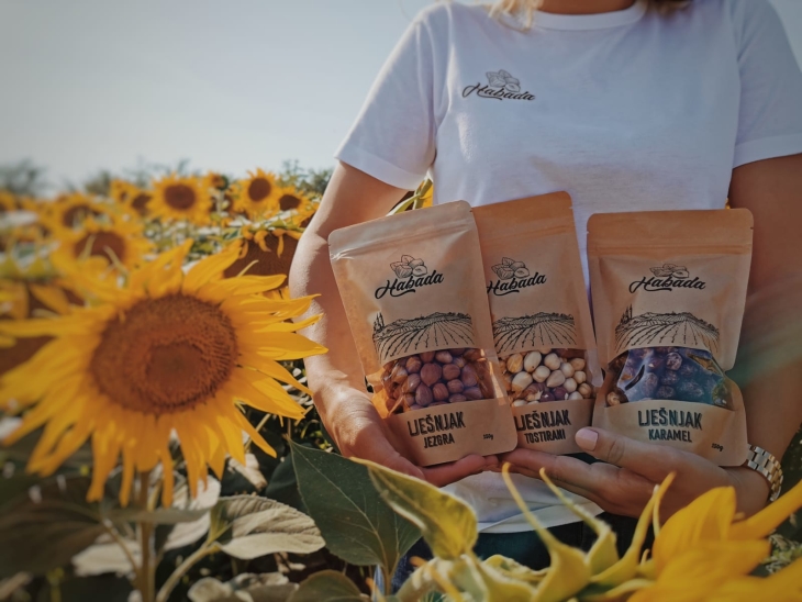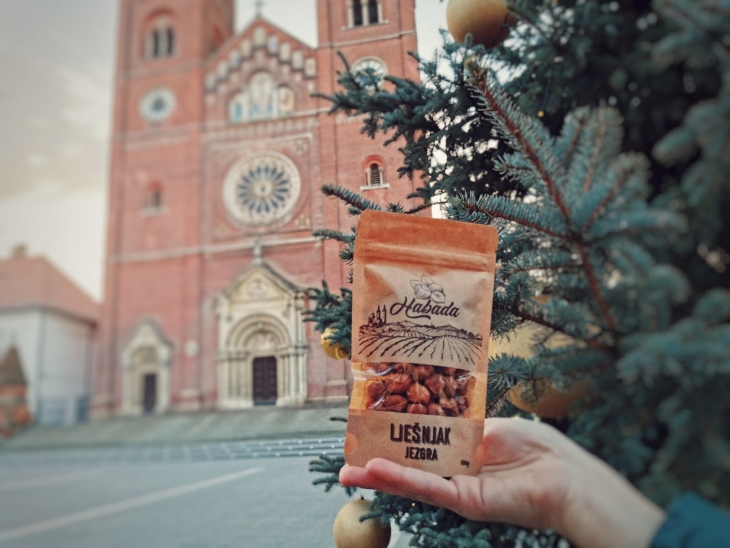 Domaći lješnjaci vrhunske kvalitete plod su obiteljskog truda i rada u nasadima lijeske na plodnoj slavonskoj crnici u đakovačkom kraju. Lješnjak jezgra dolazi u prigodnoj retro ambalaži s motivima Đakovačke katedrale i slavonskim poljem u pakiranjima od 100g, 250g, 500g i 1kg