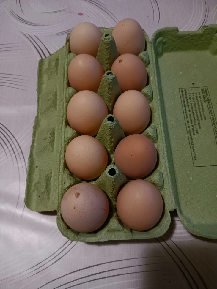 Domaća jaja iz slobodnog uzgoja. Kokoši su cijeli dan vani, hrane se iz vlastite proizvodnje i onime što same ulove. Žutanjak je jake žute boje.