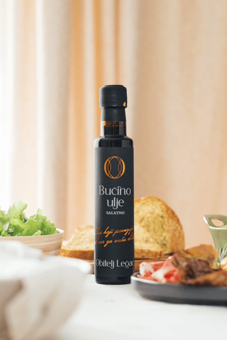 Kap ovog salatnog ulja obogaćuje vaša jela prirodnim okusima, hranjivim sastojcima i obiteljskom pažnjom. Salatno ulje spaja toplo prešano bučino ulje i suncokretovo ulje, stvarajući savršenu ravnotežu za razna kulinarska jela.