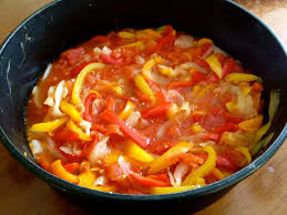 Na tavi dobro zagrijte ulje te popržite luk narezan na tanke listiće, dodajte papriku narezanu na kockice, dodajte sol, vegetu, crvenu papriku, šećer i pirjajte na umjerenoj vatri dok paprika ne omekša.