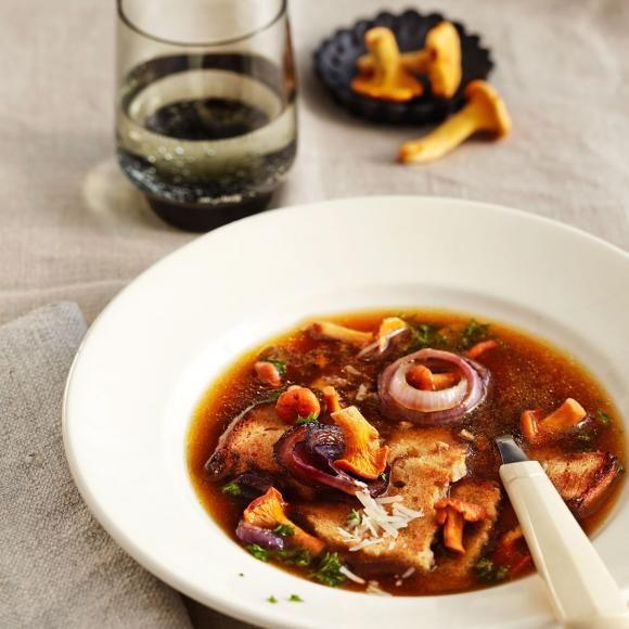 Die zerkleinerte Zwiebel in erhitztem Öl dünsten bis sie bräunlich wird. Pilze, Thymian und Petersilie dazugeben.