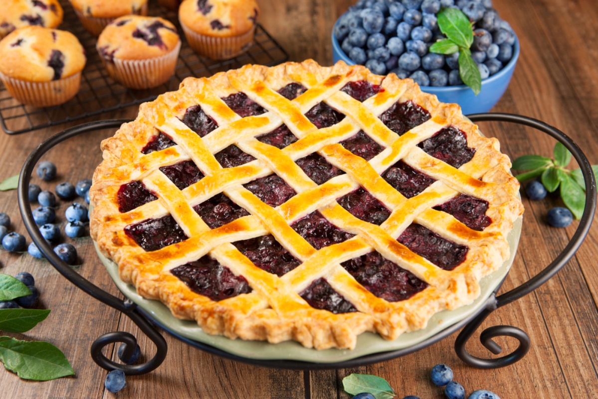 Pripremljeno tijesto razdijelite u dva dijela, te jedan dio razvaljajte na veličinu kalupa tako da prekrije i stranice kalupa te bude cca 1 cm preko ruba. Na ovako pripremljeno tijesto pospite krušnih mrvica, rasporedite osušene borovnice, te pospite cimetom, vanilin šećerom i usitnjenim orasima.