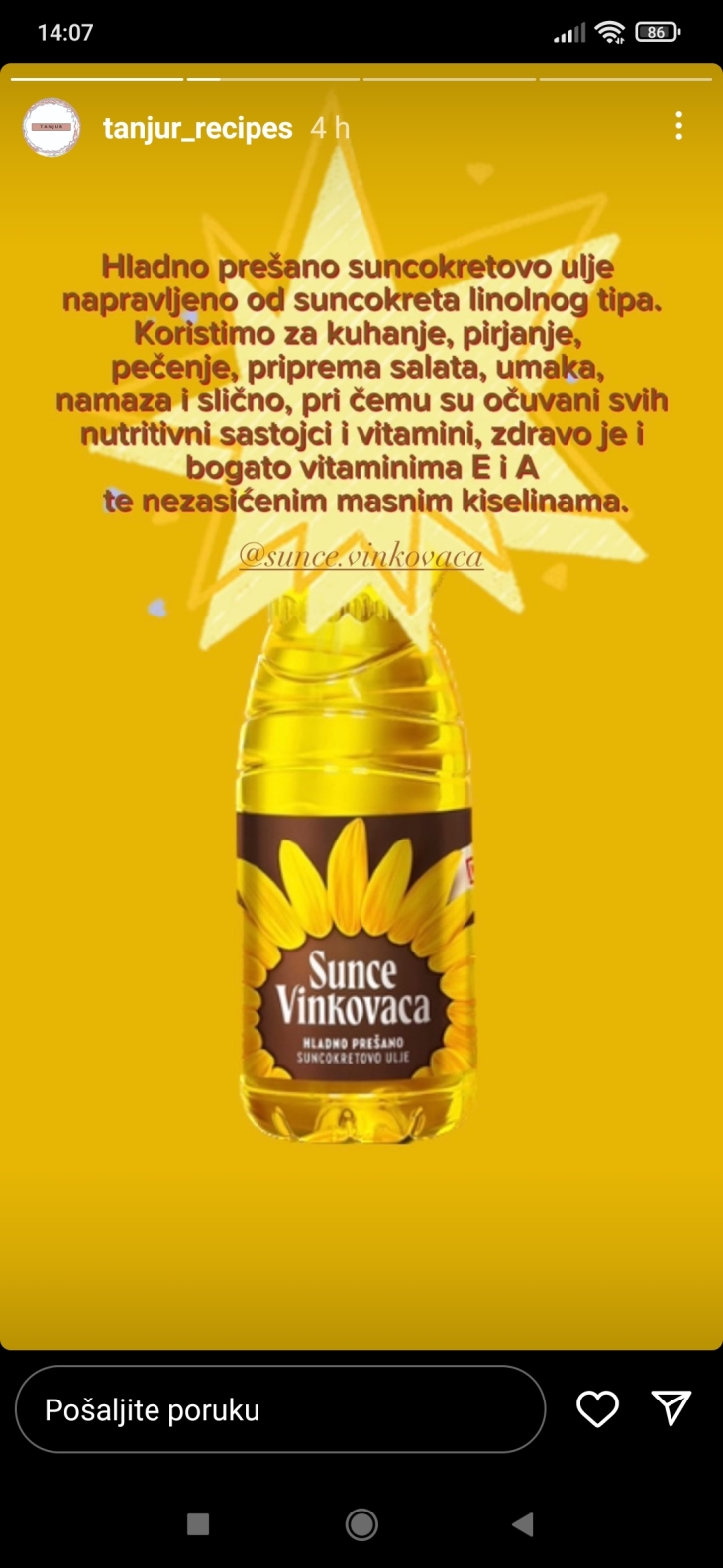 Hladno prešano suncokretovo ulje s visokim udjelom oleinske kiseline